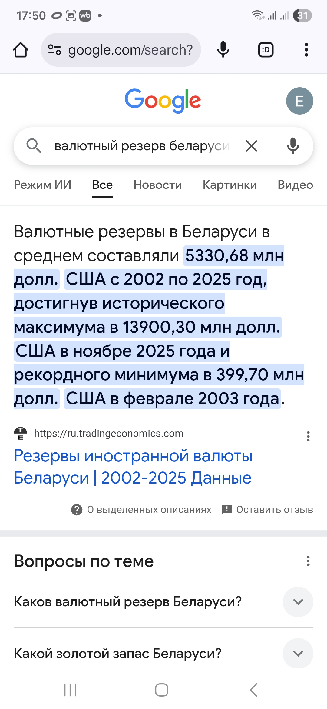 Интересно, что у нас с золото-валютным запасом.
