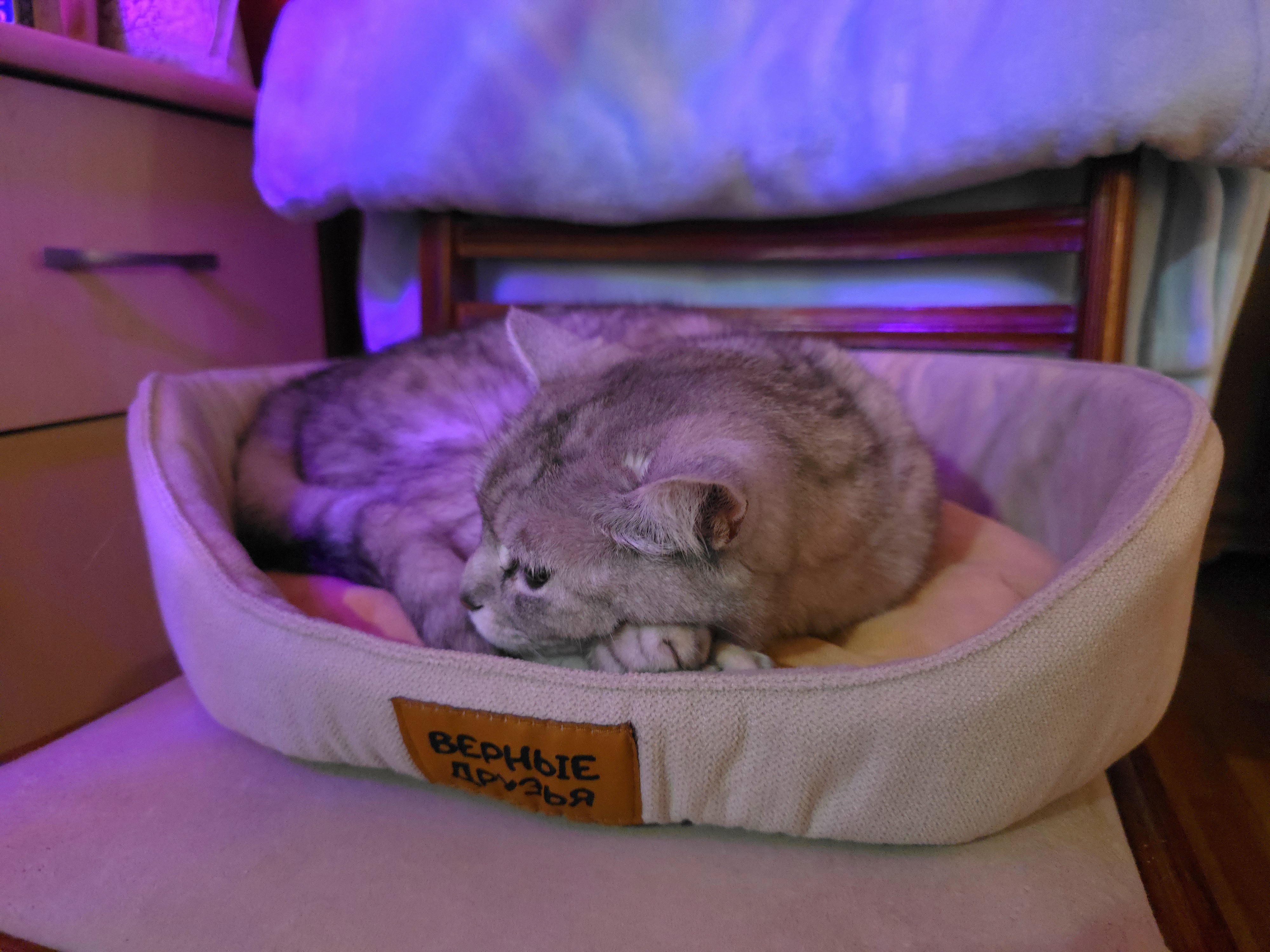 В итоге сходила туда-сюда раза два на кухню пожрать и сама прыгнула в свою кровать.