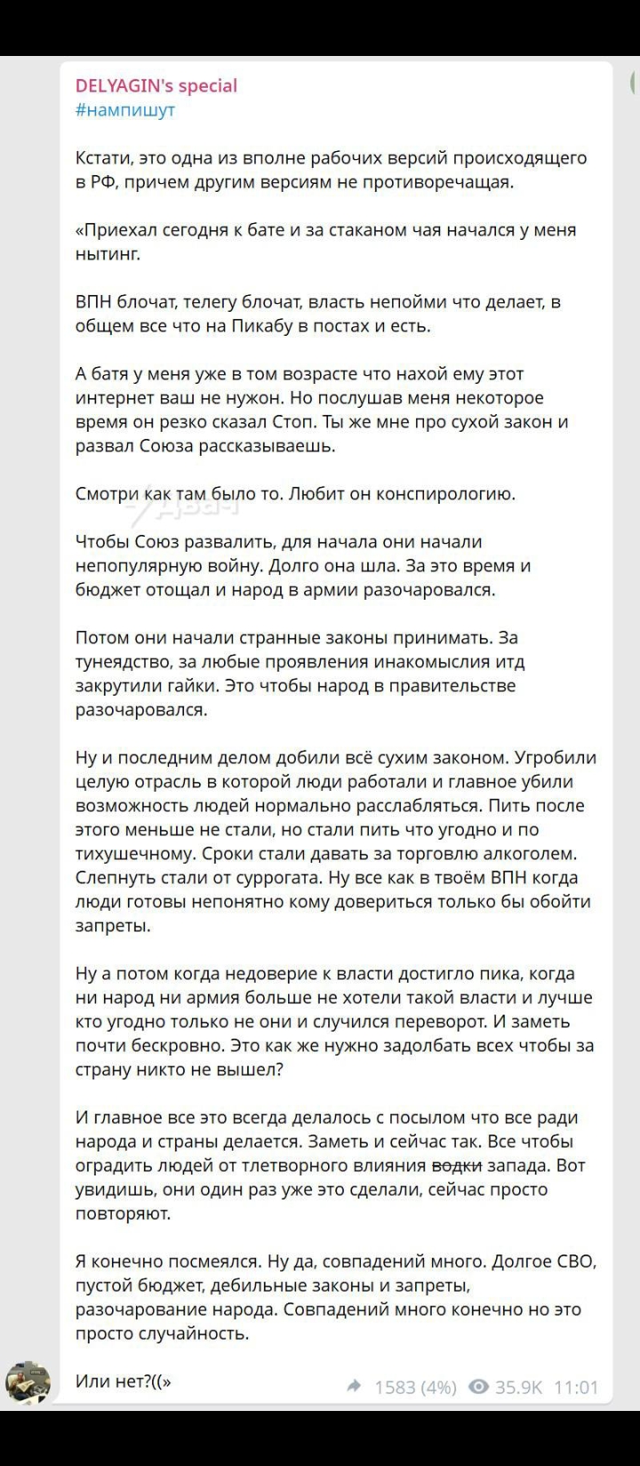 Особенно на фоне Дерипаски, Терешковой и пр. Которые говорят, чтобыдлоэлекторат должен работать 12/6 до 75 лет. Ммм?Кстати, до вас бпла еще не долетали? У них там новые разработки, дальность полета увеличена до 1000км.