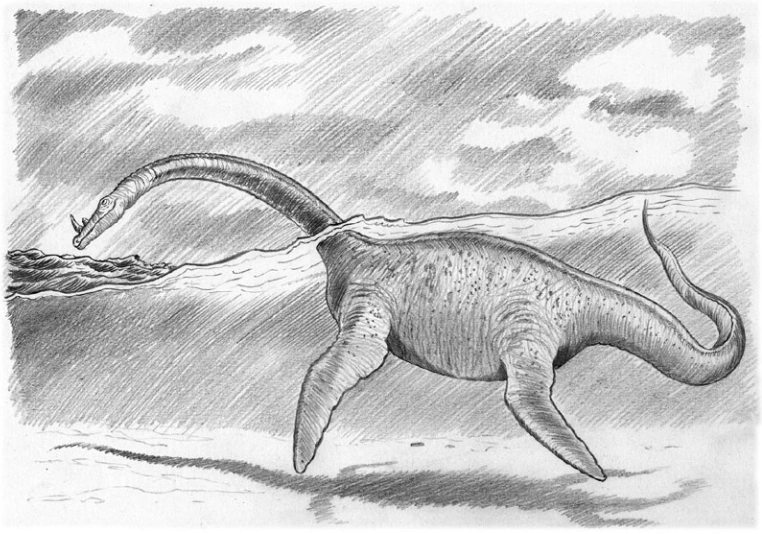 Да в том то и дело, что точно не ясно ничего. Почему один как динозавр, а другой как плезиозавр? Странная какая-то эволюция у них. Но существо похожее на плезиозавра с рогом особенно заинтересовало. Наверняка Гаганбек мечтал поместить в зоопарк африканского динозавра.