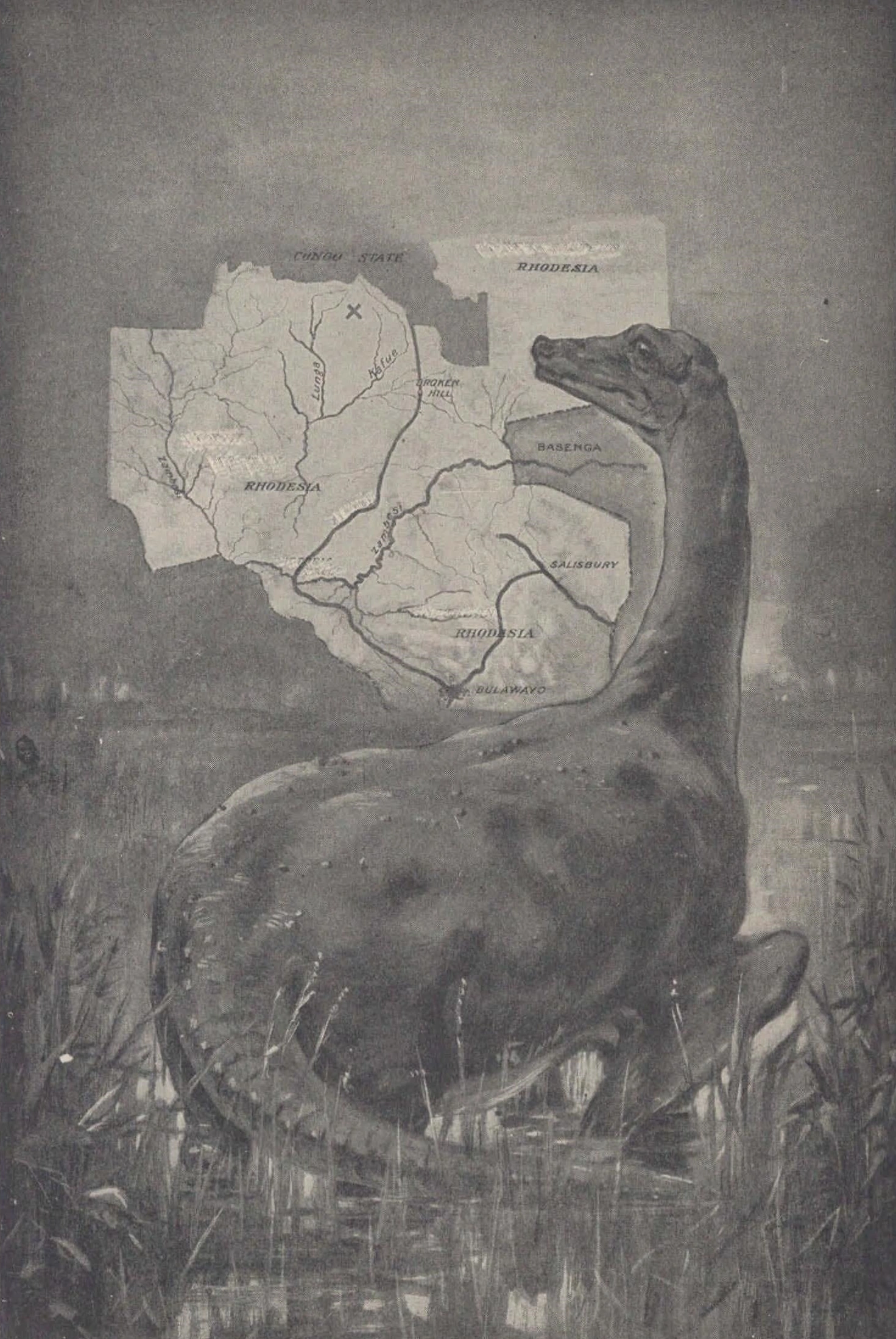 Первые слухи о крупных, предположительно похожих на динозавров животных во внутренних районах Родезии были опубликованы в 1909 году немецким владельцем зоопарка Карлом Гагенбеком (1844–1913) на основе информации, собранной его агентами Йозефом Менгесом (1850–1910), Гансом Шомбургком (1880–1967) и неназванным известным английским путешественником.