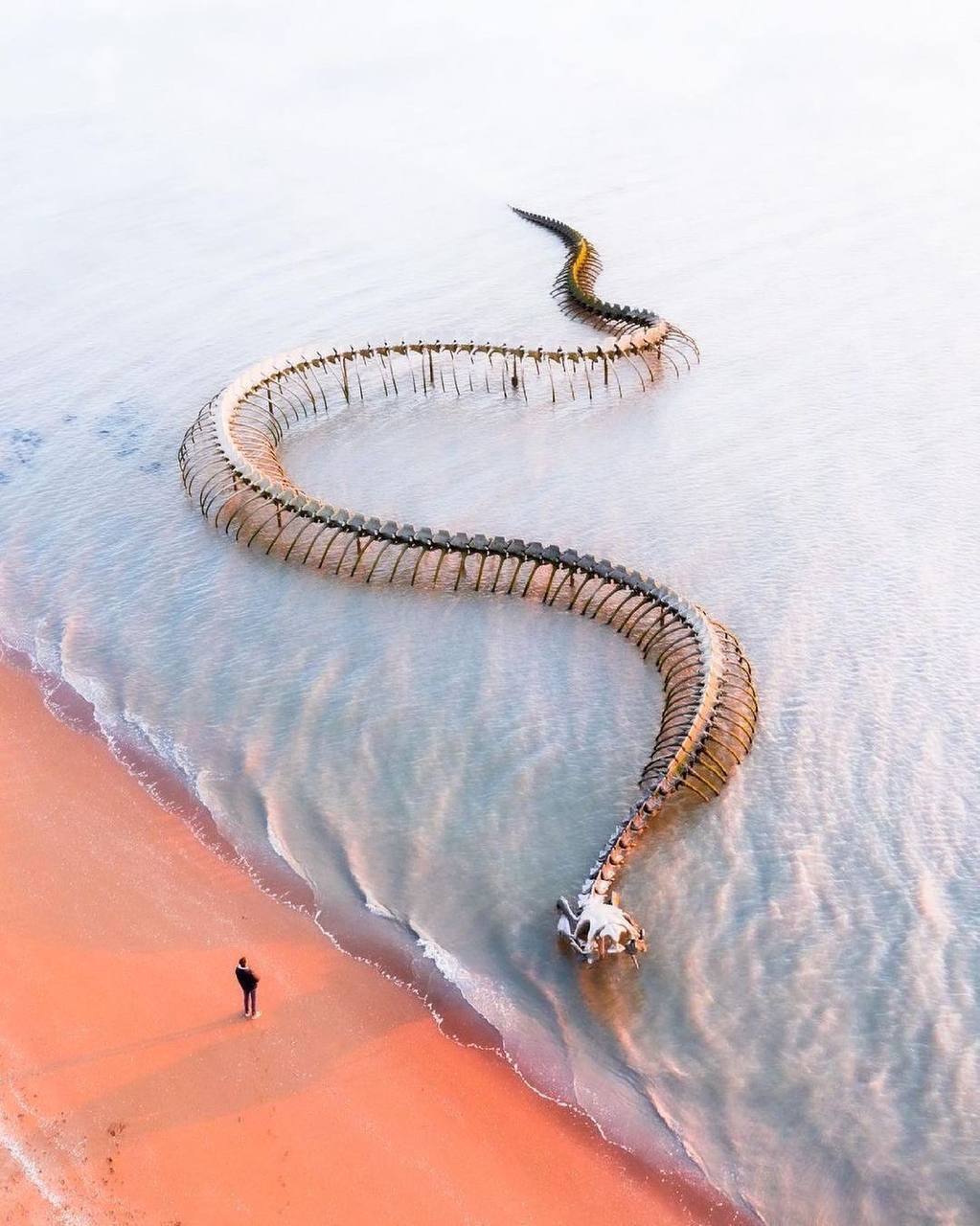 Вскоре невероятное существо посмотрело и на самих исследователей, чьи фигуры в тёмно-синих куртках чётко выделялись среди вековых льдов, покрытых снегом. Это несомненно был гигантский подводный змей. Осознавая всю опасность ситуации, мужчины быстро вскочили на снегоход и помчались к виднеющейся вдалеке станции.